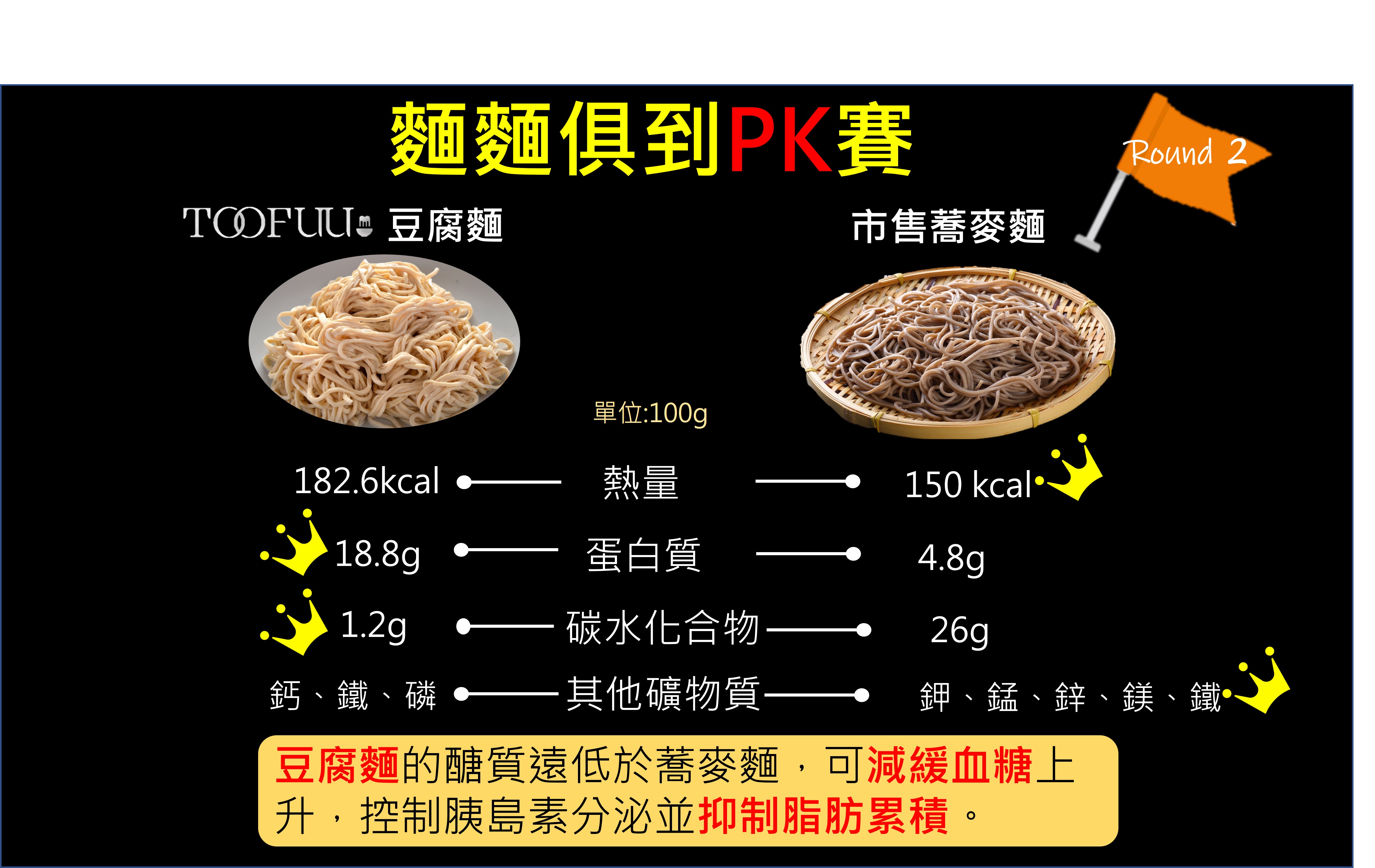 而Toofuu豆腐麵只有不到2%的碳水化合物,更有高達近20%的蛋白質,各種維生素、礦物質補足你日常飲食所忽略的營養素,